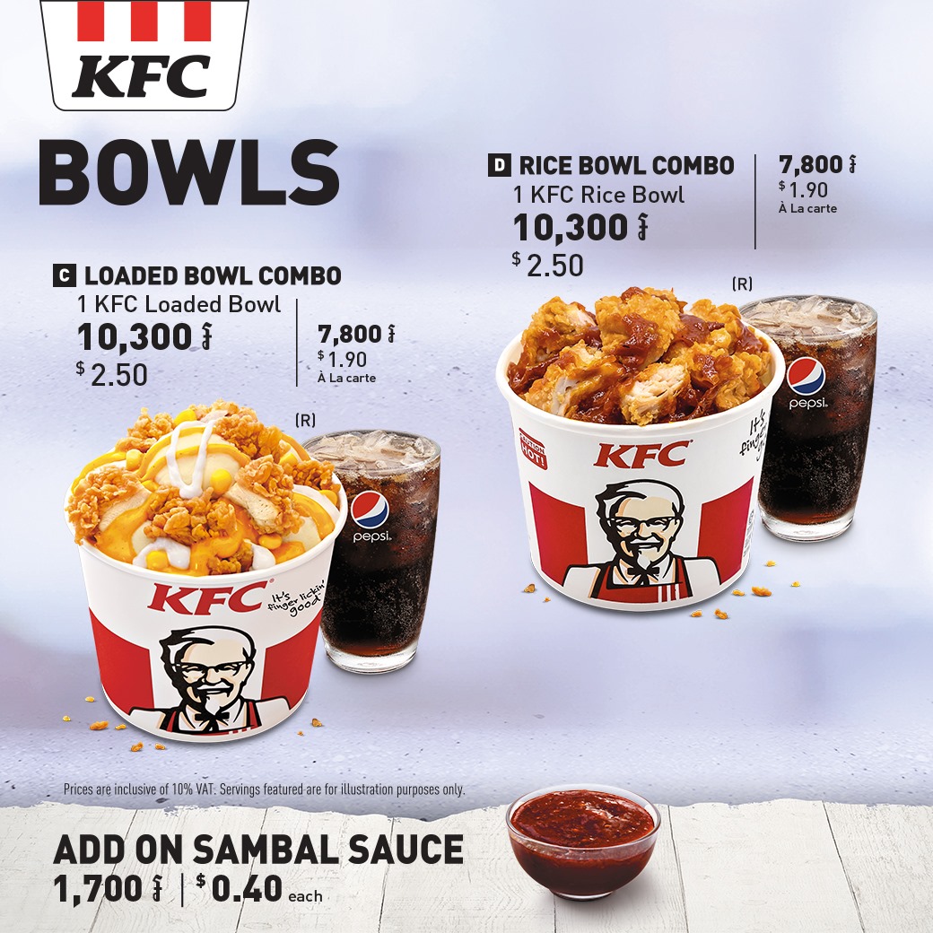 Cheezy Popcorn Bowl Crispier Fries is subject to availability and may be. Deretan menu rice bowl serba sambal matah seperti ayam sambal matah paru sambal matah cumi sambal matah dan dori sambal matah bisa didapat di sini. In line with the Malaysia Day month we are pleased to offer KFC fans a truly complete Malaysian Breakfast experience that packs a punch.